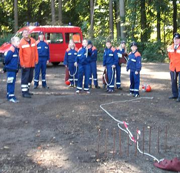 Leistungswettbewerbe der Jugendfeuerwehren im Brandschutzabschnitt Cuxhaven-Ost (Hadeln) in Hechthausen. Anlass war das 5. Jubiläum im Jahre 2000.